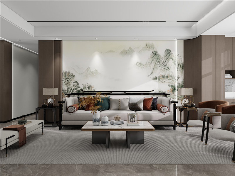 山野棲居,新中式雅墅!海創(chuàng)頂墻門柜解鎖三層自建別墅的詩意與整體感…