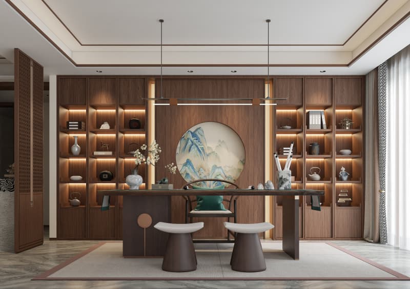 在喧囂日常中,茶室與書房作為可獨處的空間,正日益成為安放身心、沉淀思緒的歸處。海創(chuàng)頂墻門柜整裝,以一體化設(shè)計語言,將中式雅韻與現(xiàn)代簡約巧妙融合,打造出功能與意境兼?zhèn)涞膶庫o棲所。茶室:東方意境,視覺與心靈的沉浸步入茶室,中式氣韻悠然而生。背景墻巧妙運用3D打印畫,山水云霧或墨韻紋理成為空間的視覺焦點,賦予靜態(tài)空間流動的詩意。四周墻面與定制柜體,采用9A木墻板統(tǒng)一鋪陳,溫潤的木質(zhì)肌理與沉穩(wěn)色調(diào),構(gòu)筑出包容而溫暖的基底。柜體設(shè)計藏露有序,既滿足收納,又可展示茶器珍藏。巧妙之處在于轉(zhuǎn)角或立面銜接的曲線設(shè)計,柔化了空間線條,于細(xì)節(jié)處提升藝術(shù)美感,讓人在沏茶、品茗間,沉浸于舒緩的東方情境。書房:極簡有序,專注與效率的場域書房追求的是令人心靜的秩序感。墻面可通過單一材質(zhì)墻板營造出整潔、連貫的極簡視覺效果,減少視覺干擾。核心的儲物與展示功能,交由一門到頂?shù)亩ㄖ茣駥崿F(xiàn)。無論是半開放式格局,便于取閱常用書籍與擺件,還是全封閉式柜門營造純粹視覺,皆能與墻面、房門保持同色配套,形成渾然一體的空間延伸。這種高度整合的設(shè)計,不僅最大化利用空間,更營造出強烈的包裹感與秩序感,讓人迅速沉浸于工作或閱讀的心流之中。海創(chuàng)頂墻門柜整裝,不止于功能整合,更在于通過對材質(zhì)、色彩與線條的整體把控,為茶室與書房注入統(tǒng)一的靈魂。在這里,待客的從容與獨處的閑適自在交融,詮釋何謂“空間的自洽”。more +12月