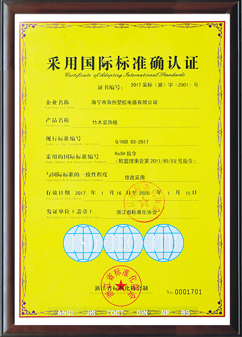 海創(chuàng)竹木集成墻面:環(huán)保材料,達到E0級歐洲環(huán)保標準,也通過歐盟RoSH指令認證,對人體無任何危害。不含甲醛,無放射性危害,沒有任何異味。安裝后便可立即入住。