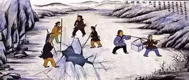 古代人會在冬天時采集冰塊,然后放在冰窖里保存。