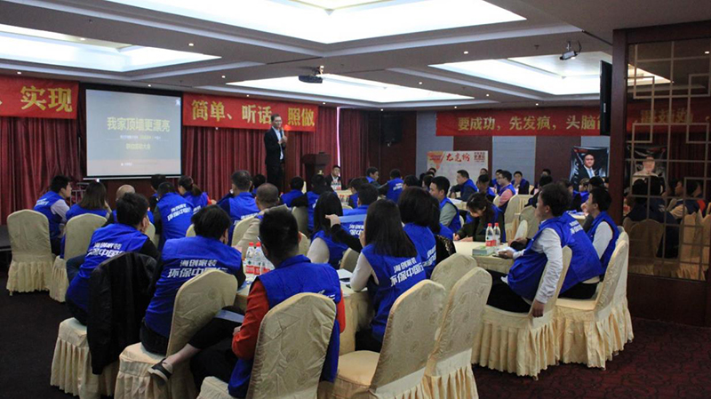 全體經銷商變身學員,悉心聽講,全心投入學習之中!擁有建材行業(yè)十多年經驗的資深營銷講師現場授課,結合本次活動內容做戰(zhàn)術解析,從前期蓄客、渠道組合、精準營銷、營銷話術、團隊面貌等多方面向學員傳授系統(tǒng)化有效成交模式。