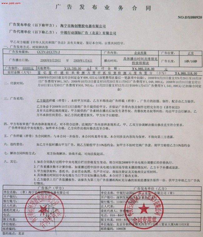 2008年9月23日,一個(gè)海創(chuàng)人都應(yīng)該銘記的日子,就在今天海創(chuàng)與北京中視行動(dòng)國(guó)際廣告公司結(jié)成品牌戰(zhàn)略合作伙伴,由中視行動(dòng)全權(quán)代理我們央視廣告的投放,海創(chuàng)也將借助央視這個(gè)平臺(tái),努力把“海創(chuàng)”做成吊頂行業(yè)第一品牌。