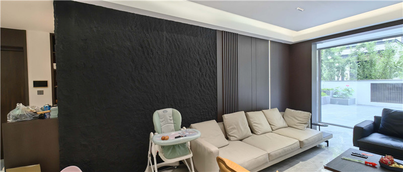 埡口和拼接型墻面設(shè)計最適合為這樣的L型沙發(fā)做背景,大小不一的漸變色塊高級而富有律動,仿佛讓這個空間都生動起來。